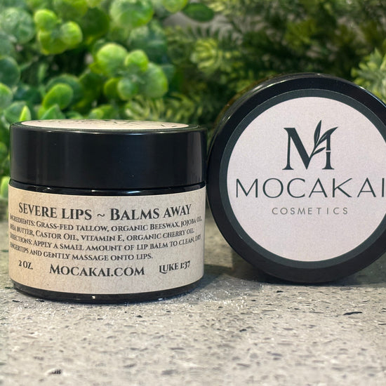 Give your lips the intensive care they deserve. Our Severe Lip Balm is a rich, ultra-nourishing formula made with tallow and organic beeswax to deeply condition and protect even the driest lips. Jojoba oil, shea butter, and castor oil provide silky smooth hydration, while vitamin E supports healthy, resilient skin. Infused with organic cherry oil, this balm glides on effortlessly, leaving lips soft, supple, and comforted. 2 oz